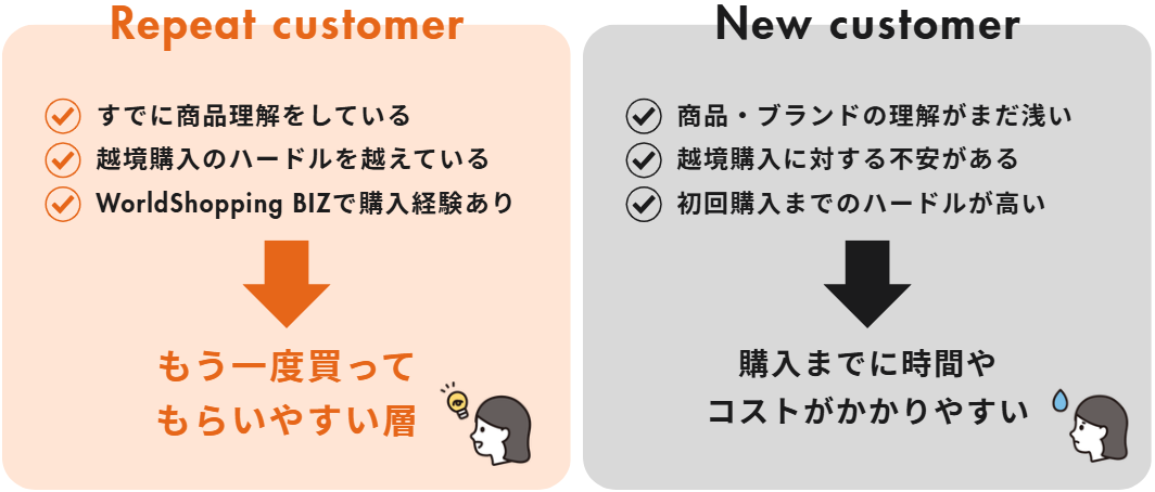 - ショップ様のECサイトで過去に商品を購入されたことがある海外カスタマーが対象となります。