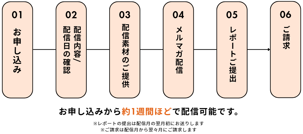 ご提供いただいた内容をもとにメールを作成・配信を行います。