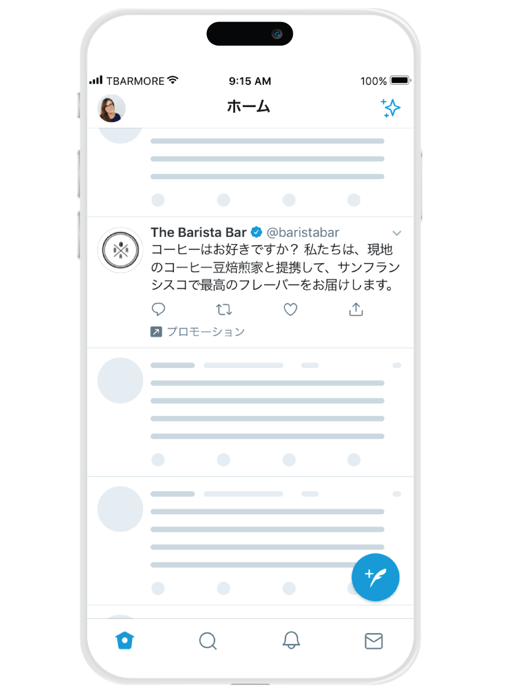 X テイクオーバー:タイムラインや [話題を検索] タブの上部に広告を独占的に表示