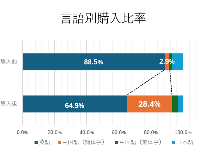 中国語(簡体字)のお客様購入金額が約8倍に上昇!