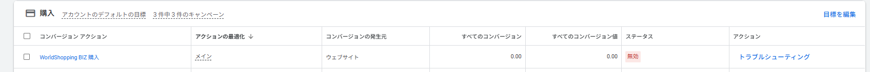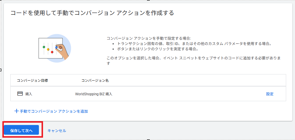 ➡ WorldShopping BIZで発生した購入を、Google広告の「成果」として記録する設定です。