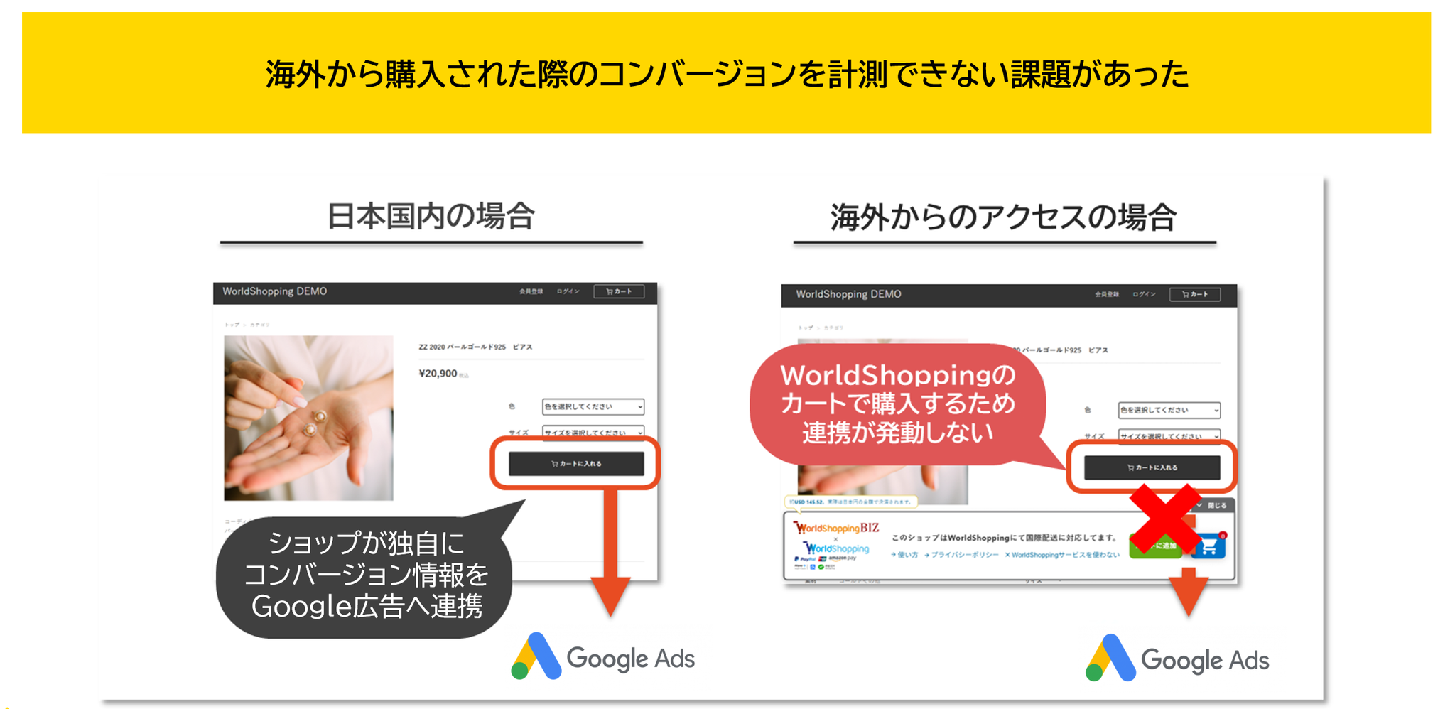 海外のお客様がGoogle広告を経由してWorldShoppingで商品を購入した際に、WorldShoppingからGoogle広告へコンバージョン情報を連携できるようになりました。