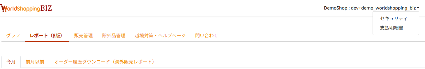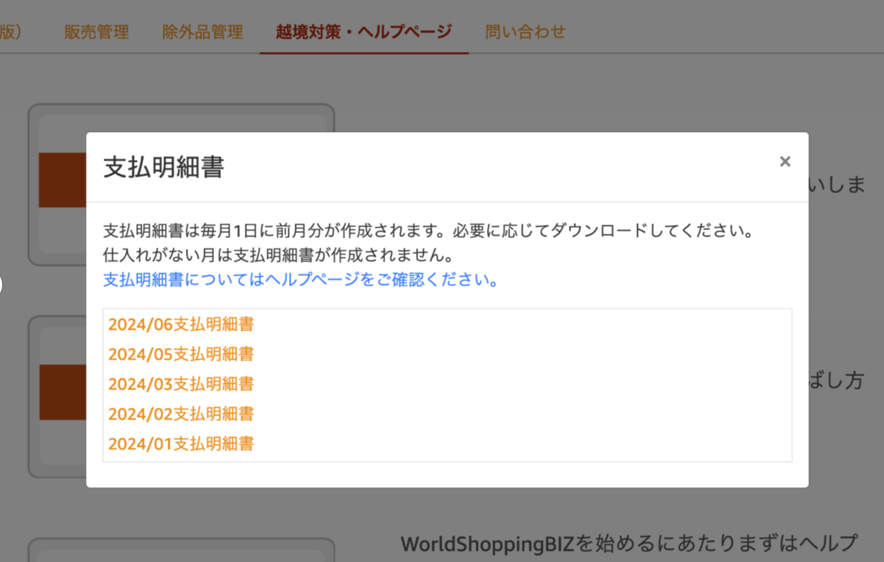 WorldShoppingBIZではショップダッシュボード内からECサイトで海外購入があった場合に支払明細書のダウンロードが可能です。